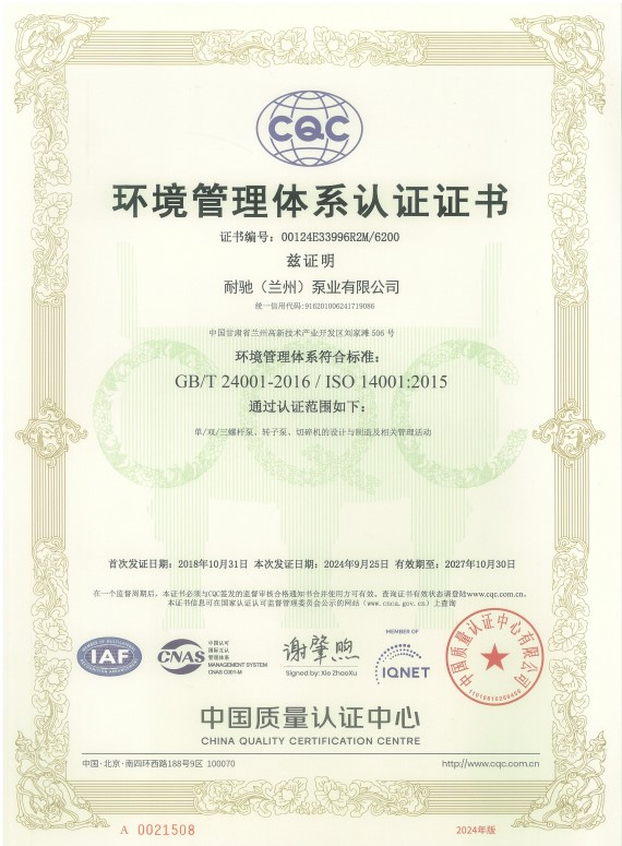 环境管理体系认证证书